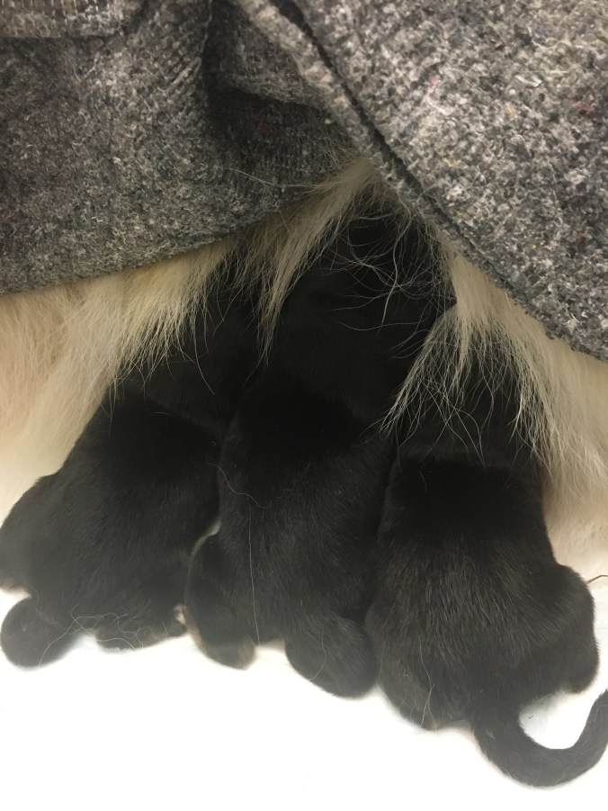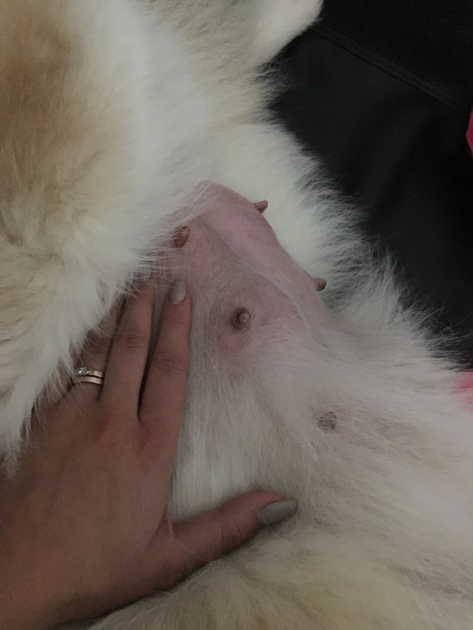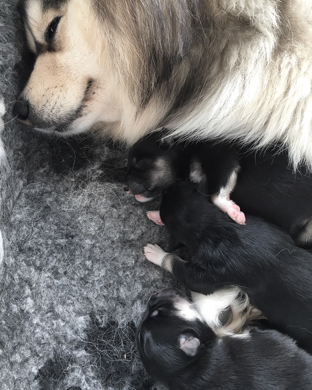 Jag trodde att den första valpen var död men efter utlåtande från veterinären fanns där bara tre stycken och första valpen var intrasslad i livmodern (tror jag det var) så hon hade aldrig kunnat komma ut själv. Så vilken tur att det blev kejsarsnitt. Tusen tack Flyinge distriktsveterinären !! ❤️❤️❤️
