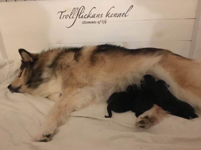 Nu är valparna 5 dagar gamla och blir bara rundare och goare så långt dagarna går. Stora är dem nu också väger runt 600g.