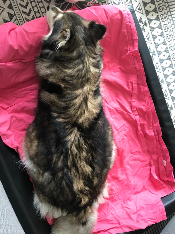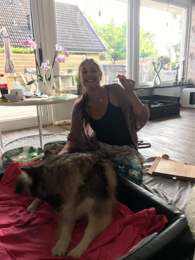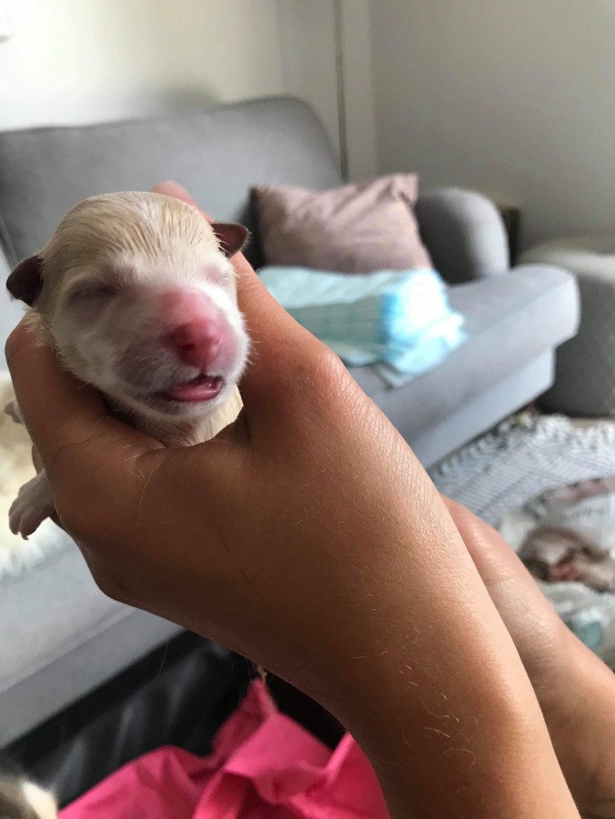 Dag 58, Tisdagen den 11 juni kl 13.00 stod jag på jobb med en kund i slingor. Sa till kunden att jag ska bara hem och kissa tjejerna. Helt ok så jag körde hem. 2 min hem från jobb. Väl hemma får tjejerna kissa och yenka fortsätter att droppa mycket vätska. Skumt tänkte jag!! Jag får temps henne. 36.3!!!!!!! Nä nu jävlar ! Valparna skulle ju först komma på söndag. Tidigast fredag. 😱😱😱😱 jag var inte jätte förberedd men var ändå glad att jag fixat valprummet 3 dagar tidigare. Ringde i panik till min vän Jaqqe och frågade om hon kunde komma och passa henne tills jag hade skickat hem kunden utan all sin blekning i håret. Jo då, hon satte sig i bilen och kom direkt ❤️ Yenka lugnade sig och väntade tills matte kom hem igen.