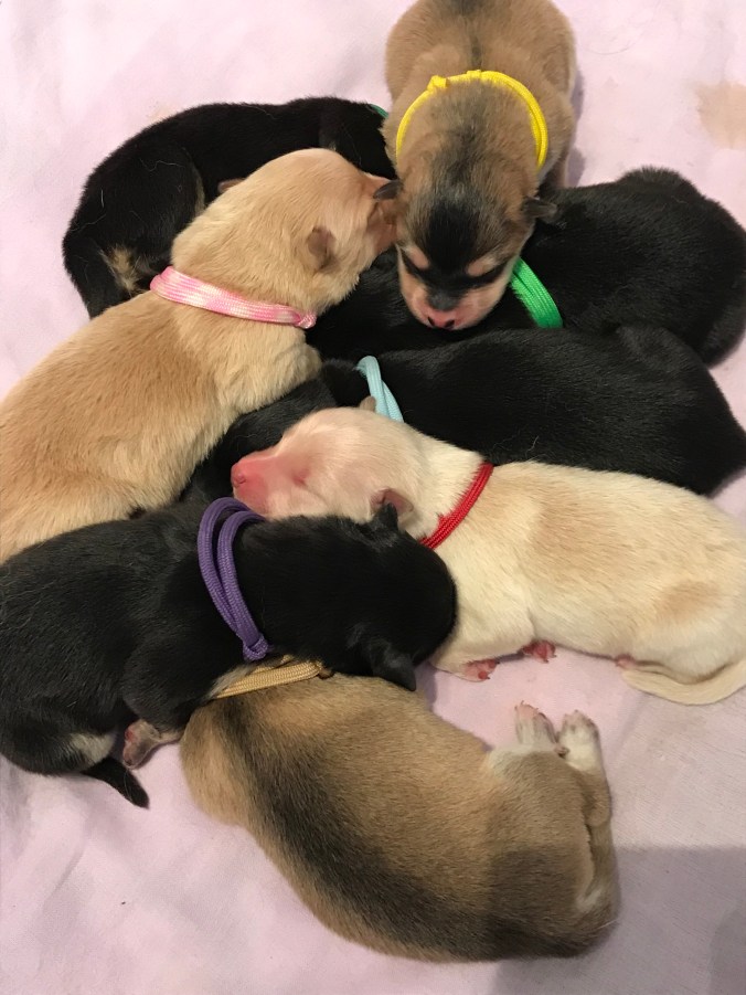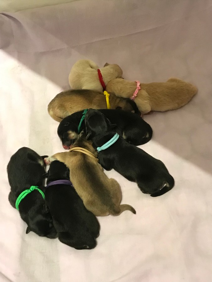 Alla valparna växer och frodas och nu är de en vecka gamla. Små tjocka korvar som börjar gå runt på alla fyra istället för att åla sig fram ! 🤣❤️