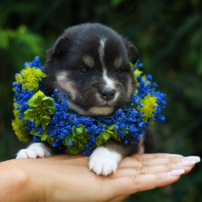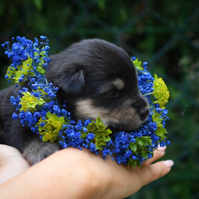 Teresa var här så vi passade på att ta fina bilder på valparna. Blomsterbutiken i Veberöd var snälla att fixa till blomkransar 🥰 rosa till flickorna och blått till pojkarna. Här kommer bilderna ❤️