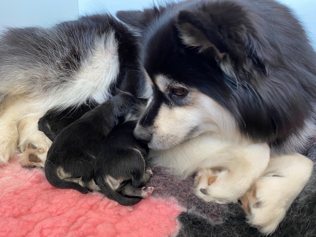 Mamma och valpar mår bra, de växer så de knakar 🥰🧡💛💙